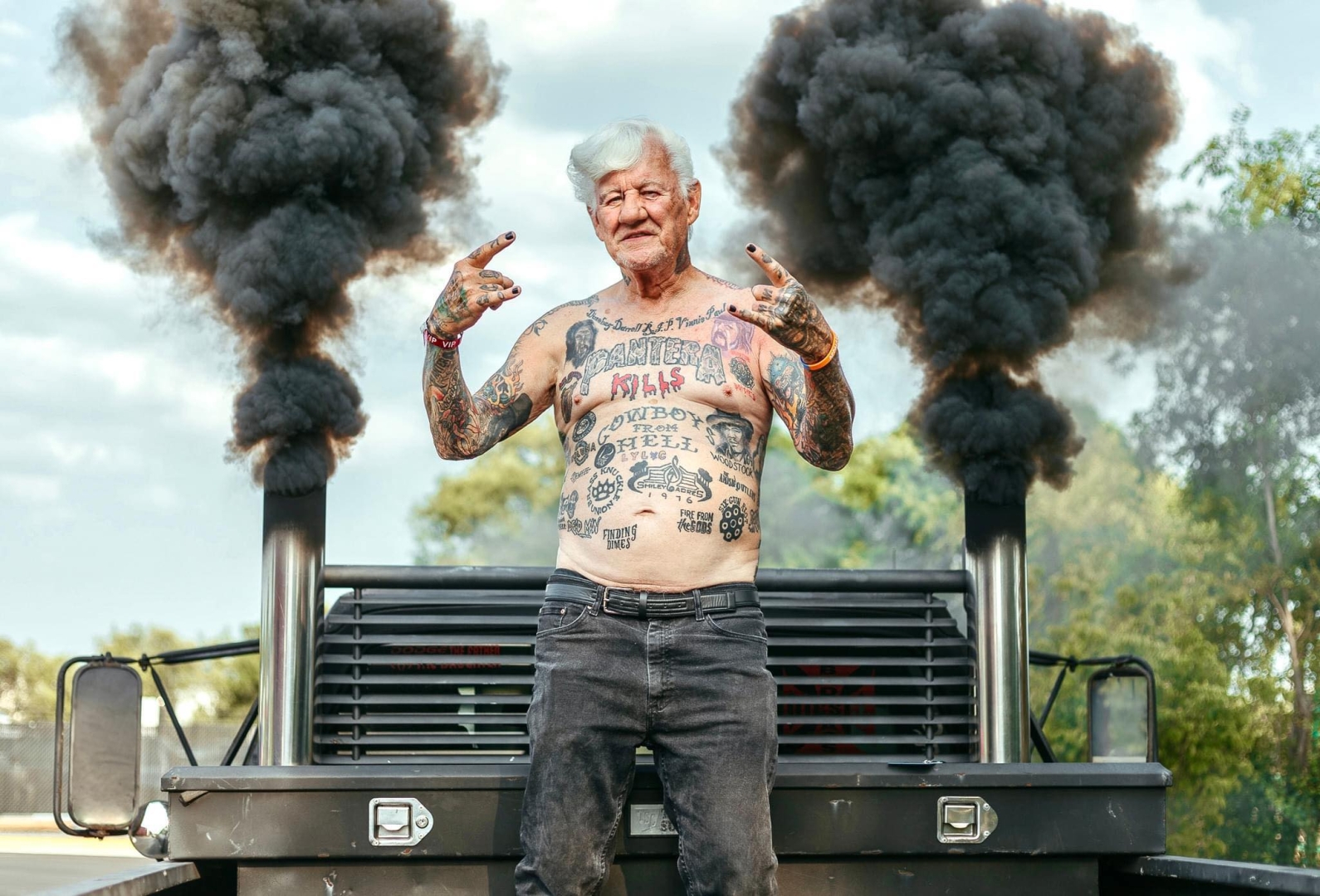 75 years old, titanium white hair, sleeved in tattoos and always sporting a black band tee. He’s been to more concerts than you and he’s not stopping anytime soon.