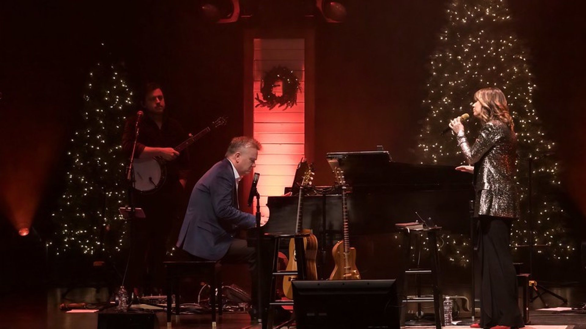 The concert was broken into two halves with a short intermission between each. Exquisite Christmas trees adorned the stage along with lights and wreaths to set the mood for the Christmas performance. Front and center of the stage was Keith’s piano surrounded on each side by a bevy of top-notch musicians that made the songs come alive.