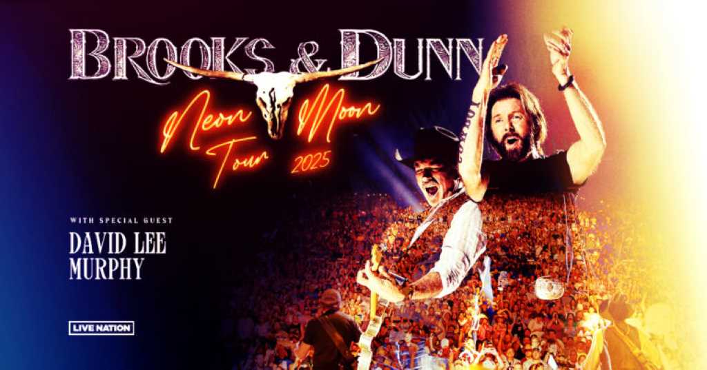 Brooks & Dunn’s one-of-a-kind live show is “a don’t miss” (Whiskey Riff) full of hits from their storied 30 year plus career that take “concert goers down memory lane and reinforce the incredible mark the pair left on Country Music” (Men’s Journal). Adding to the excitement, renowned country rocker David Lee Murphy will accompany Brooks & Dunn on the Neon Moon Tour in 2025. The tour will also offer a variety of different VIP packages and experiences for fans to take their concert experience to the next level. Packages vary but include premium tickets, access to the pre-show VIP Lounge, exclusive poster signed by Kix and Ronnie, VIP merchandise gift and more. VIP package contents vary based on the offer selected. For more information, visit vipnation.com.