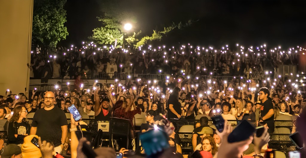 Joseph’s crowd work was masterful—he held the camera to his face during “The Contract,” making every fan feel seen. The filming was going on live. The dream light fuzz when they were filming was a cool aspect. Sometimes Tyler would have a spot on his chest that was black that would grow and then you would all of a sudden see Josh lean in, big grin while he was beating the hell out of the drums. The production is absolutely outlandish with it being two men, a drum, a bass, and some amazing showmanship. The banter between the two is epic as well, the fun joke was that Josh had hand crochet his shirt for the night, which is plausible. Sure. Crowd was filmed many times strewn across the big screen. Between screen time, crowd interaction, sing-a-longs,